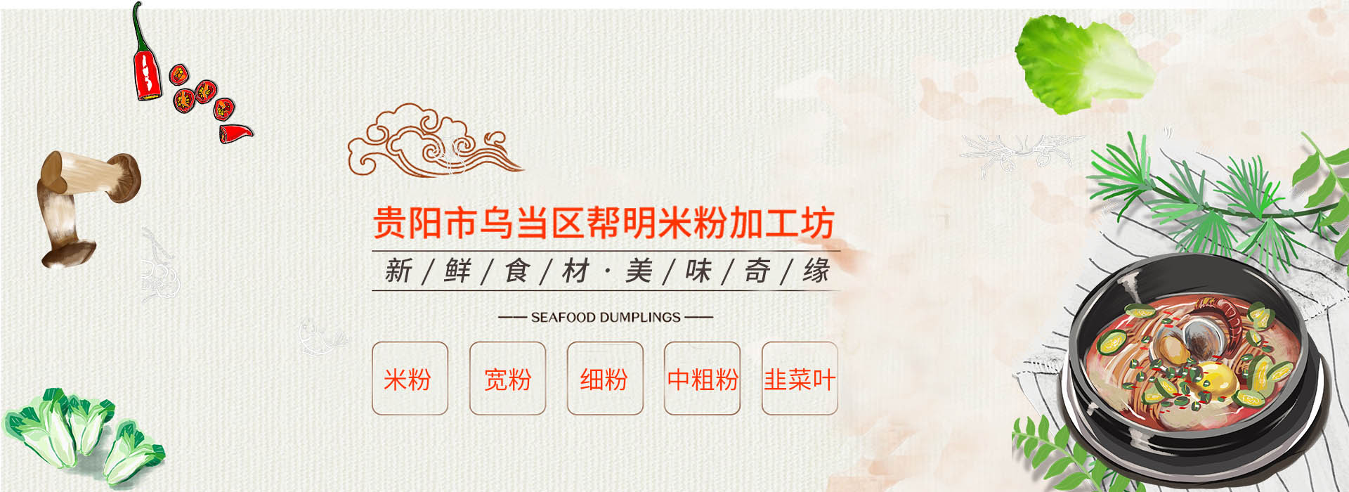贵阳市乌当区帮明米粉加工坊位于贵州省贵阳市乌当区东风镇加油站米粉厂,是一家集生产、销售及配送为一体的综合服务型公司,主要生产、羊肉粉,牛肉粉,砂锅粉,湖南粉,酸粉,肉沫粉,软哨粉,大排粉,辣鸡粉等系列产品的加工店。主要为粉馆、学校、餐饮公司、超市、各公司食堂等提供高品质的粉制品。加工品质,质量保证。 公司本着“食品安全、健康”的生产宗旨及米粉传统加工工艺,始终坚持“诚信经营、质量至上”的经营理念,产品均选自高品质的米粉和天然之水制成,是一家高品质的达标米粉加工店。我们的服务范围覆盖全贵州省及周边省份,目前大小客户近300余家。我们的产品绿色有营养,欢迎大家前来订购。愿与各界同仁,共谋发展,共同提高,共创未来!